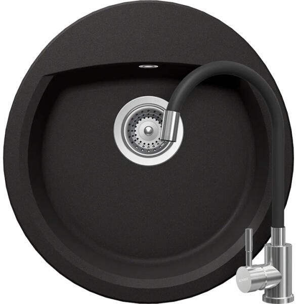 Schock Manhattan R-100 konyhai mosogatótálca Cristalite Nero 470 x 490 mm, gránit, hagyományos beépítés, fekete munkalapba beépíthető, egymedencés, csepegtető nélküli, ideálisan illeszkedik a minimum 45 cm-es alsószekrényhez. A csaptelep helye előre elkészített, könnyedén áttörhető. A csomagban találja a használati útmutatót, amely részletes leírást ad a csaptelep h