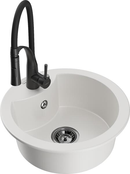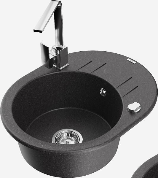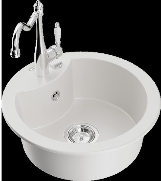 Mexen Diego konyhai mosogató: Gyártó: Mexen Sorozat: Diego Modell: 1 kamrás Beépítés: felülről a munkalapba süllyesztve Méretek: 488x488x167 mm Kamra mélysége: 157 mm Kamra átmérője: 406 mm Lefolyó átmérője: 90 mm Szifon + automatikus leeresztő csavar Anyaga: gránit (80% gránit - kő, 20% gyanta) Sima felület a könnyű tisztítás érdekében: igen Megnövelt ellenállás