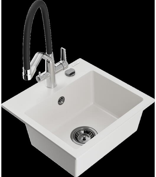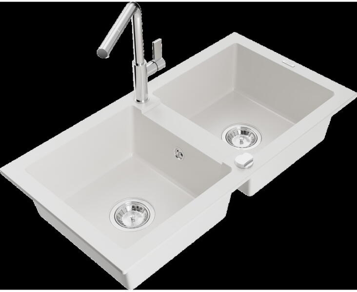 Milo konyhai mosogató: Gyártó: Mexen Méretek: 435x410x171 mm Kamra mélysége: 161 mm Kamra méretei: 375x280 mm Lefolyó átmérője: ø90 mm Típus: 1 kamrás Beépítés: felülről a pultba süllyesztve Anyaga: gránit (80% gránit adalékanyag 20% gyanta) Túlfolyó lyuk: igen Lyukak: 2 (1 x akkumulátor, 1 x automatikus leeresztő csavar vezérlés) Nagy ellenállás a karcolásokk