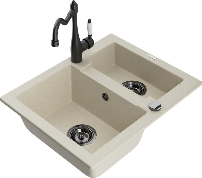 Mexen Carlos, gránit mosogató 582x475x177 mm, 1,5 kamrás és mosogató csaptelep Carla, bézs, 6518-69-670700-70 Műszaki adatok: Gyártó: Mexen Sorozat: Carlos Modell: 1,5-kamrás csepptálca nélkül Beépítés: felülről a munkalapba süllyesztve Szín: bézs Hossza 582 mm Szélesség 475 mm Magasság: 177 mm Kamra mélysége: 162 mm (nagyobb), 102 mm (kisebb) Kamra mérete: 395x272 mm (n