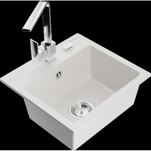 Mexen Enzo konyhai mosogató: Gyártó: Mexen Sorozat: Enzo Modell: 1 kamrás, rövid csepegtetővel Hossz: 576 mm Szélesség: 465 mm Magasság: 174 mm Kamra mélysége: 164 mm Kamra mérete: 395x320 mm Szifon + automatikus leeresztő csavar Anyaga: gránit (80% gránit - kő, 20% gyanta) Megnövelt ellenállás az ütésekkel, karcolásokkal, elszíneződésekkel, magas hőmérséklettel és hő