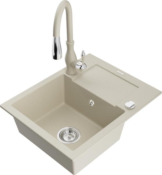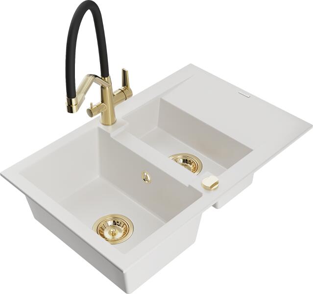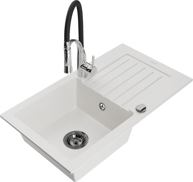 Mexen Pablo konyhai mosogató: Gyártó: Mexen Sorozat: Pablo Modell: 1 kamrás Beépítés: felülről a munkalapba süllyesztve Méretek: 752x436x161 mm Kamra mélysége: 151 mm Kamra mérete: 356x332 mm Lefolyó átmérője: 90 mm Szifon + automatikus leeresztő csavar Anyaga: gránit (80% gránit - kő, 20% gyanta) Sima felület a könnyű tisztítás érdekében: igen Megnövelt ellenállás