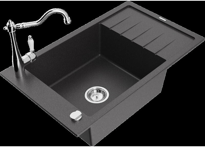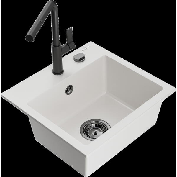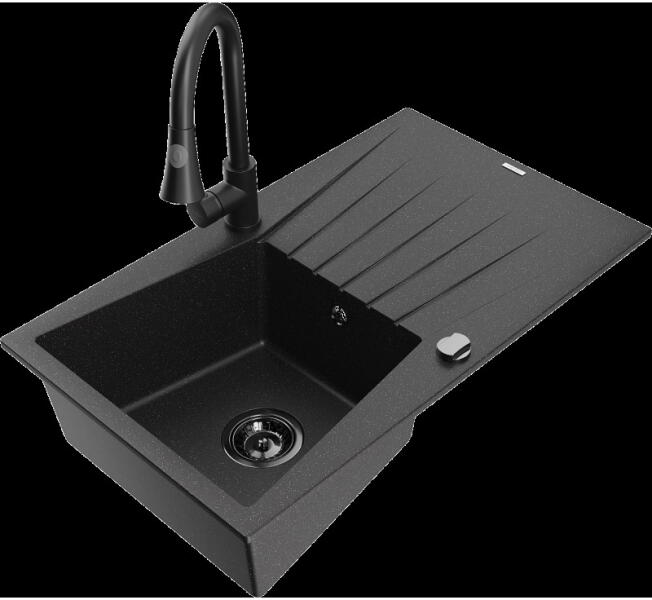 Nero Grande gránit mosogató, ami egyszerre modern és látványos, valamint tökéletesen kihasználható nagyobb edények tisztítására is. A nagyméretű 46.5 x 42 cm-es (emellett 20 cm mély) medence mellett egy csepegtető rész is kialakításra került, mindez úgy, hogy nem vesz el jelentős helyet a konyhai munkafelületből. Modern megjelenésű, letisztult szögletes formavilág jell