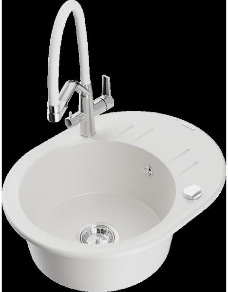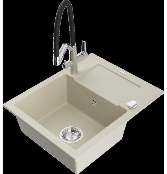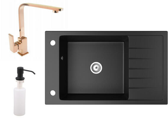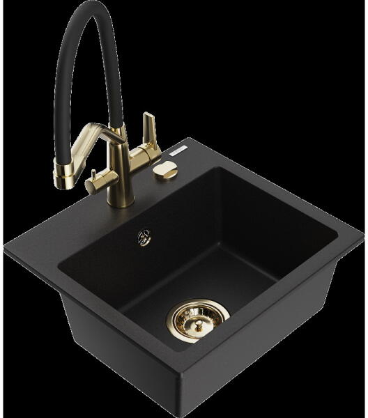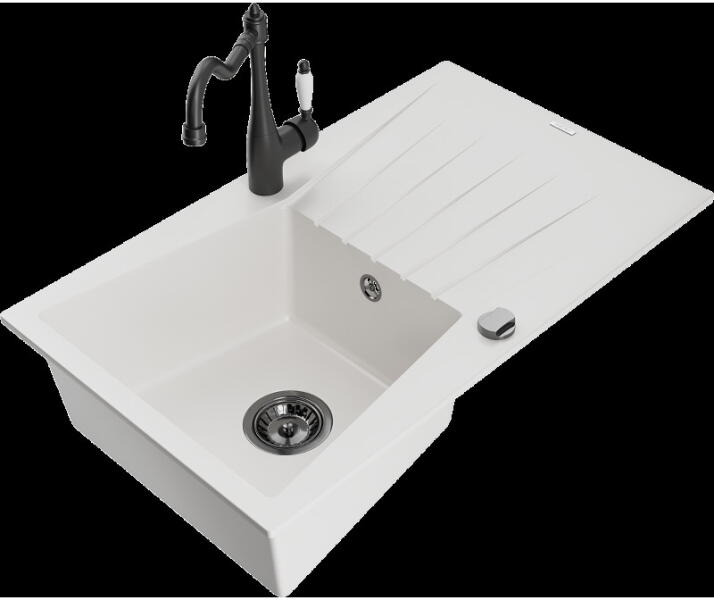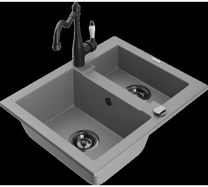 Gyártó: Mexen Sorozat: Matias + Savita A MOSOGATÓ: Méretek: 900x505x200 mm Kamra mélysége: 180 mm (nagyobb), 115 mm (kisebb) Kamra méretei: 435x335 mm (nagyobb), 345x150 mm (kisebb) Kimeneti átmérő: ø90 mm Típus: 1,5-kamrás, rövid csepegtetővel Mosogató típusa: a pultba süllyesztett Anyaga: gránit (80% gránit adalékanyag 20% gyanta) Túlfolyó nyílás: Igen Lyukak: 2 (1 lyuk