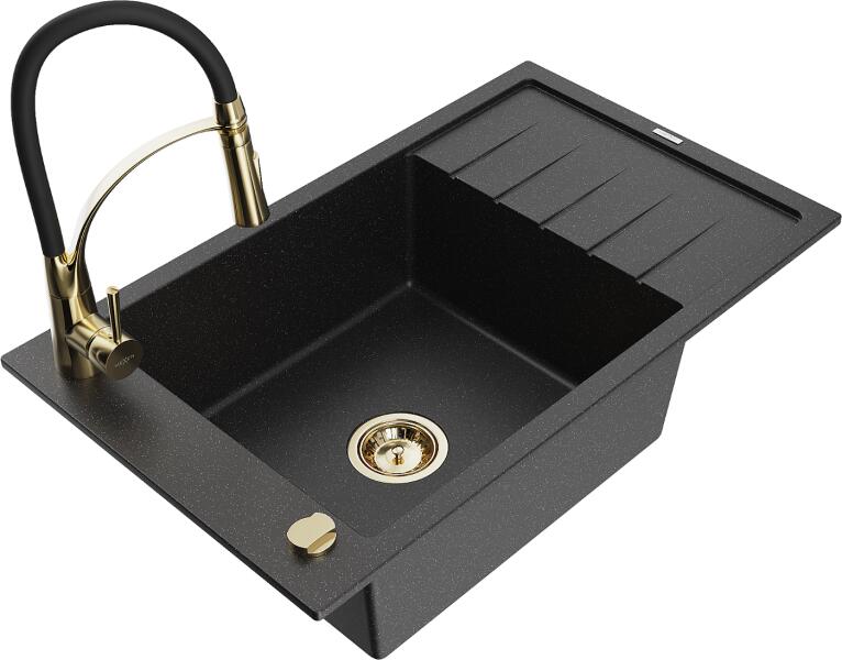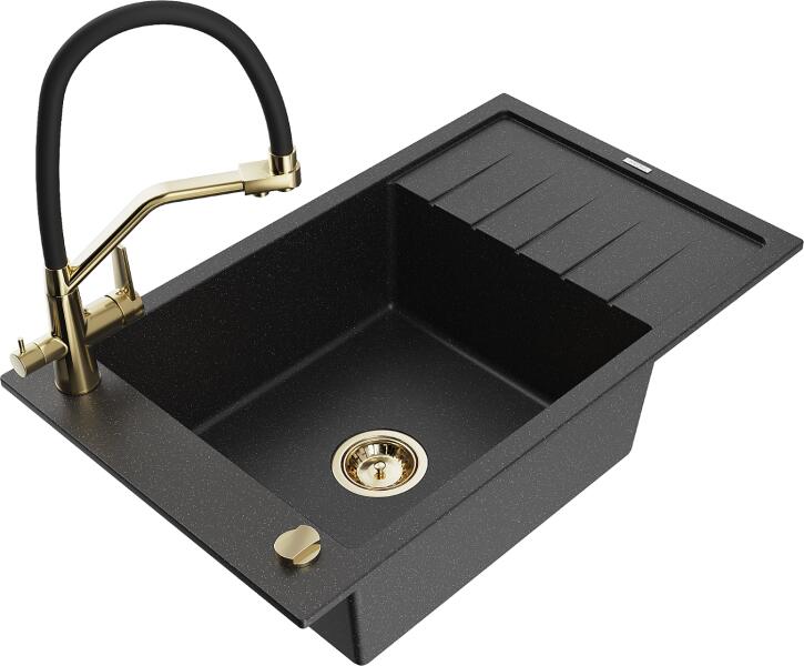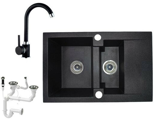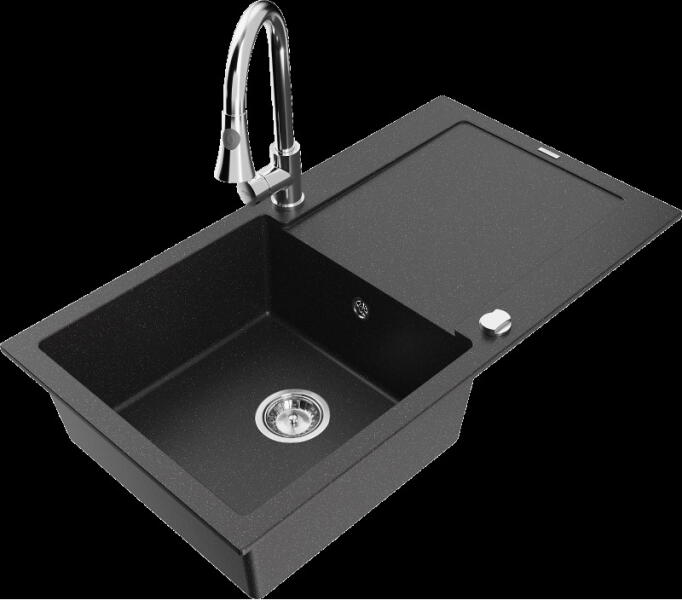 1.5 medencés matt fekete gránit mosogató ami egyszerre kínálja a másfél medencés mosogatók előnyeit csepegtetővel, és a helytakarékos megoldást. Modern formavilág, letisztult, egyenes élek és ezáltal kissé szögletes megjelenés jellemzi, modern vagy minimál stílusú konyhákba ajánljuk. CSOMAG TARTALMA: - Gránit mosogató - Gamma Deco magasított csaptelep - Szifon készlet