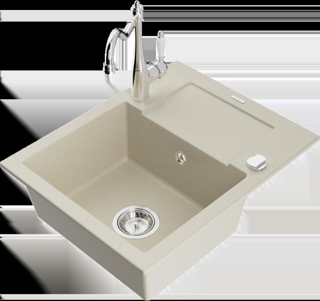 Mexen Elias konyhai mosogató: Gyártó: Mexen Sorozat: Elias Modell: 1 kamrás Beépítés: felülről a munkalapba süllyesztve Méretek: 795x480x200 mm Kamra mélysége: 190 mm Kamra mérete: 465x420 mm Lefolyó átmérője: 90 mm Szifon + automatikus leeresztő csavar Anyaga: gránit (80% gránit - kő, 20% gyanta) Sima felület a könnyű tisztítás érdekében: igen Megnövelt ellenállás