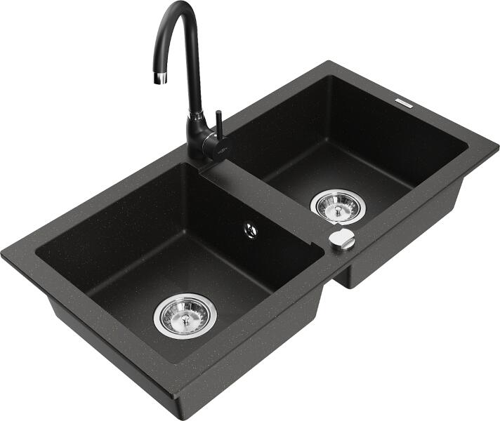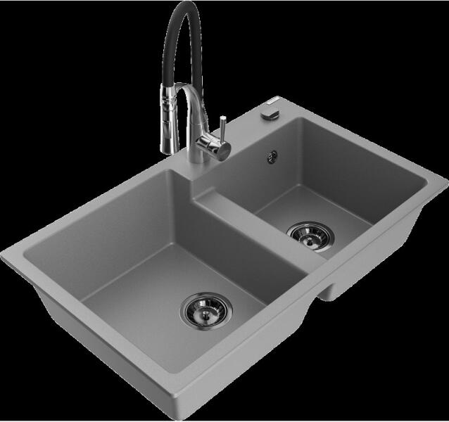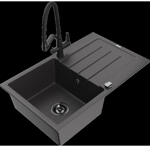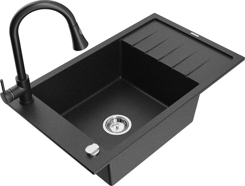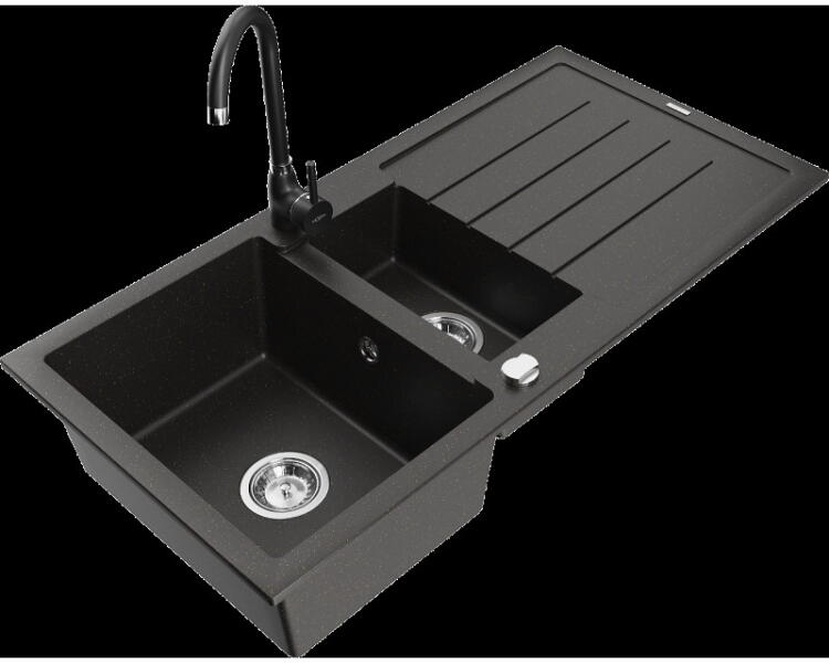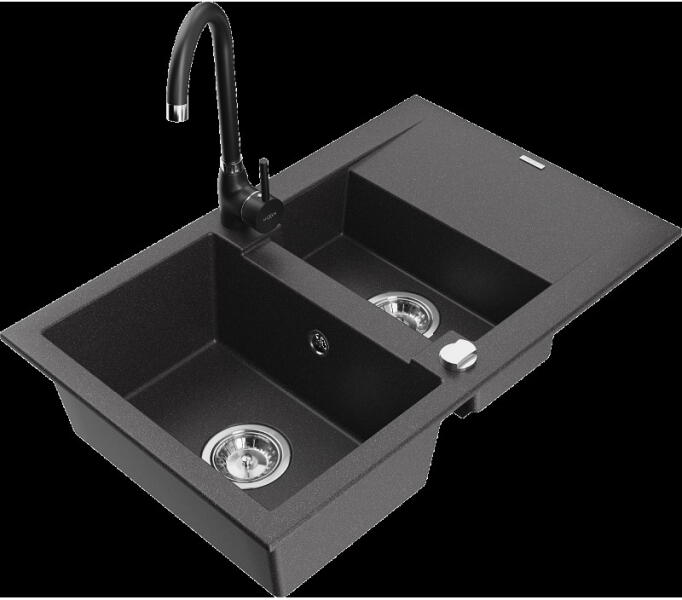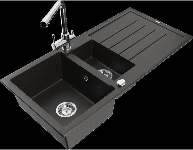 Mexen Elias konyhai mosogató: Gyártó: Mexen Sorozat: Elias Modell: 1 kamrás Beépítés: felülről a munkalapba süllyesztve Méretek: 795x480x200 mm Kamra mélysége: 190 mm Kamra mérete: 465x420 mm Lefolyó átmérője: 90 mm Szifon + automatikus leeresztő csavar Anyaga: gránit (80% gránit - kő, 20% gyanta) Sima felület a könnyű tisztítás érdekében: igen Megnövelt ellenállás