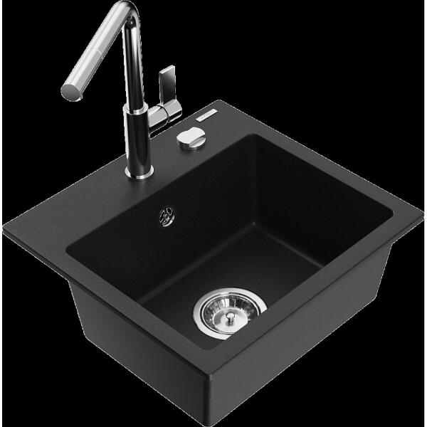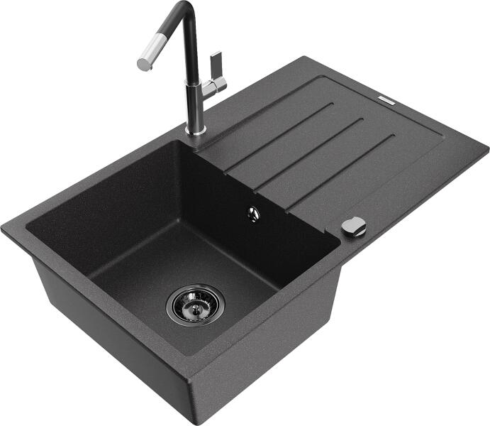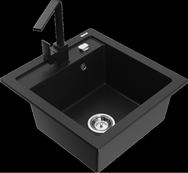 Mexen Bruno konyhai mosogató: Gyártó: Mexen Sorozat: Bruno Modell: 1 kamrás Beépítés: felülről a munkalapba süllyesztve Méretek: 795x495x200 mm Kamra mélysége: 190 mm Kamra mérete: 440x360 mm Lefolyó átmérője: 90 mm Szifon + automatikus leeresztő csavar Anyaga: gránit (80% gránit - kő, 20% gyanta) Sima felület a könnyű tisztítás érdekében: igen Megnövelt ellenállás