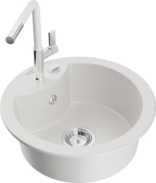Mexen Diego konyhai mosogató: Gyártó: Mexen Sorozat: Diego Modell: 1 kamrás Beépítés: felülről a munkalapba süllyesztve Méretek: 488x488x167 mm Kamra mélysége: 157 mm Kamra átmérője: 406 mm Lefolyó átmérője: 90 mm Szifon + automatikus leeresztő csavar Anyaga: gránit (80% gránit - kő, 20% gyanta) Sima felület a könnyű tisztítás érdekében: igen Megnövelt ellenállás