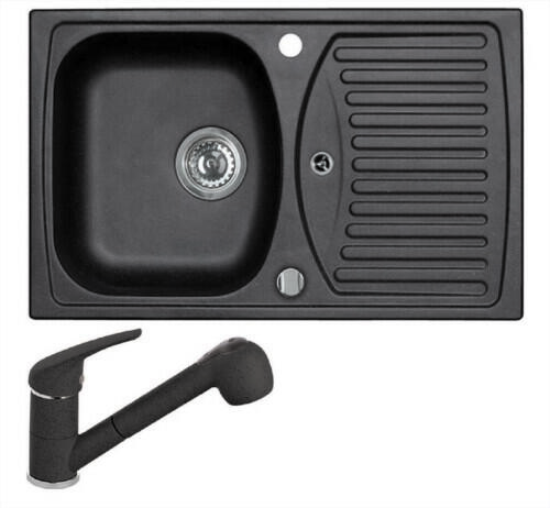 Alveus Record 30 egymedencés csepptálcás gránit mosogató + Színazonos Alveus zuhanyfejes csaptelep Granital széria Különleges, kiváló minőségű kompozit anyagból készült mosogatómedence Egyedi megjelenés Munkalapra szerelhető modell 1 medencés + csepegtető tálcás Méret: 780 x 480 Medence mélység: 160 mm Minimum szekrény méret: 450 mm praktikus helytakarékos forma Aján