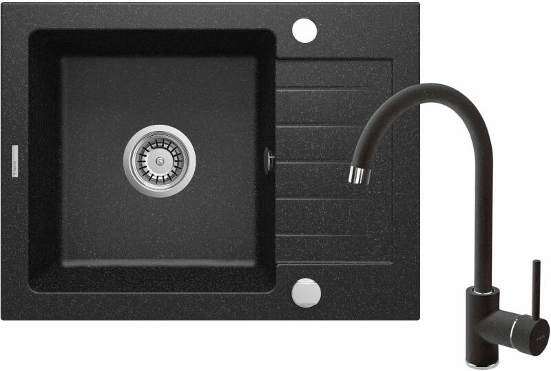Mexen Leo, gránit mosogató 900x500x190 mm, 1 kamrás és mosogató csaptelep Carla, fekete foltos, 6501-76-670700-76 Gyártó: Mexen Sorozat: Leo + Carlo Mosogató: Méretek: 900 x 500 x 190 mm Kamra mélysége: 180 mm Kamra méretei: 430x415 mm Kimeneti átmérő: ø90 mm Típus: 1 kamrás lefolyóval Beépítés: felülről a munkalapba süllyesztve Anyaga: gránit (80% gránit adalékanyag 20