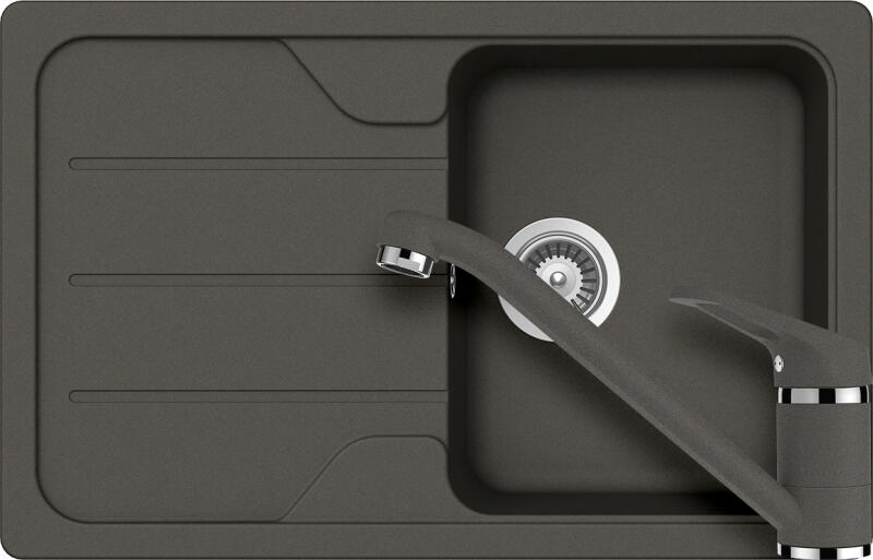SCHOCK CRISTALITE® Formhaus D-100S mosogatótálca mosogatótálca: 1 medence + csepptálca felülete kissé érdes, textúrája kőhatású anyag: gránit, 70-75% természetes kvarchomokból pórusmentes ProHygienic 21 eldolgozás megelőzi a foltosodást és a szennyeződések lerakódását élelmiszerbarát ellenáll a mechanikai hatásoknak ellenáll a magas hőmérsékletnek rendkívül id