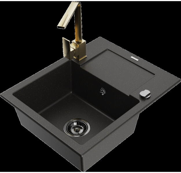 Gyártó: Mexen Sorozat: Bruno + Carla Mosogató: Fekete szín Mérete: 795x495x200 mm Kamra - mélység: 200 mm Kamra méretei: 440x360 mm Kimeneti átmérő: ø90 mm Típus: 1 kamrás csepegtetővel Mosogató típusa: a munkalapba való beágyazáshoz Anyaga: gránit (80% gránit adalékanyag 20% gyanta) Túlfolyó nyílás: Igen Lyukak: 2 (1 lyuk a mosogató csapjához, 1 lyuk az automatikus le