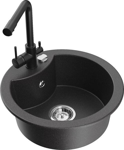 Gyártó: Mexen Sorozat: Diego + Savita Mosogató: Mérete: 488x488x167 mm Kamra - mélység: 157 mm Kamra átmérője: 406 mm Kimeneti átmérő: ø90 mm Típus: 1 kamrás Mosogató típusa: a munkalapba való beágyazáshoz Anyaga: gránit (80% gránit adalékanyag 20% gyanta) Túlfolyó nyílás: Igen Lyukak: 2 (1 a mosogató csapjához, 1 az automatikus leeresztő csavar vezérléséhez) Nagy