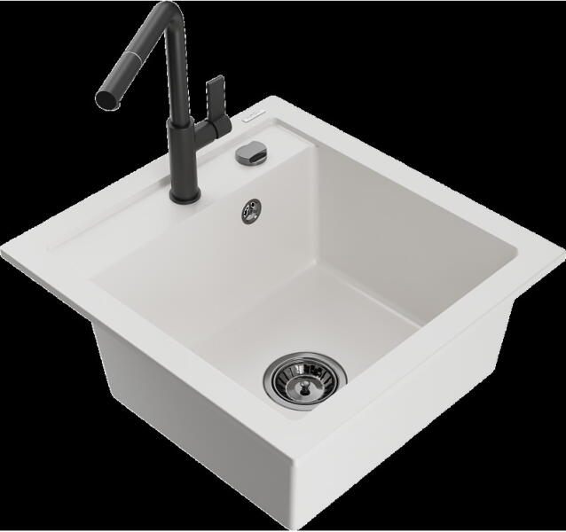 Mosogató: Gyártó: Mexen Sorozat: Vito Modell: 1 kamrás Felszerelés: munkalapra Felület típusa : sima Hossza 490 mm Szélesség 520 mm Magasság: 210 mm Kamra mélysége: 200 mm Kamra mérete: 410x360 mm Lefolyó átmérője: 90 mm Szifon + automatikus leeresztő csavar Anyaga: gránit (80% gránit - kő, 20% gyanta) Megnövelt ellenállás az ütésekkel, karcolásokkal, elszíneződésekke