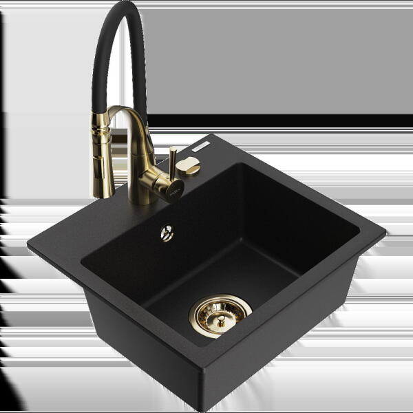Mexen Diego, 1 kamrás gránit mosogató 488x488x167 mm, fekete Duero csaptelep, fekete foltos, 6512-76-671600-70 Gyártó: Mexen Sorozat: Diego Modell: 1 kamrás Felszerelés: munkalapra Szín: fekete foltos Felület típusa : sima Hossza 488 mm Szélesség 488 mm Magasság: 167 mm Kamra mélysége: 157 mm Kamra mérete: 406 mm Lefolyó átmérője: 90 mm Szifon + automatikus leeresztő Anyaga: