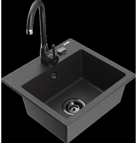 Mexen Diego konyhai mosogató: Gyártó: Mexen Sorozat: Diego Modell: 1 kamrás Beépítés: felülről a munkalapba süllyesztve Méretek: 488x488x167 mm Kamra mélysége: 157 mm Kamra átmérője: 406 mm Lefolyó átmérője: 90 mm Szifon + automatikus leeresztő csavar Anyaga: gránit (80% gránit - kő, 20% gyanta) Sima felület a könnyű tisztítás érdekében: igen Megnövelt ellenállás