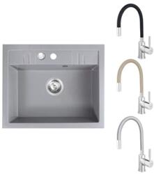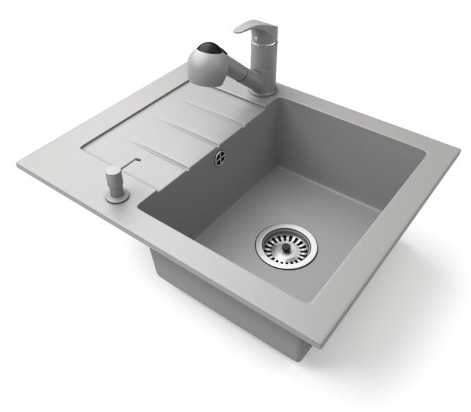 NERO Monza gránit mosogatótálca szürke színben. Kis méretének köszönhetően tökéletesen illik olyan kisebb méretű konyhákba ahol minden centiméter helyre szükség van. Mindössze 57 cm széles, amelyet mélységével kompenzál, így mind a medence, mind a csepegtető rész tökéletesen használható. Modern, karakteresen szögletes formavilág és kiemelkedő anyagvastagság jell