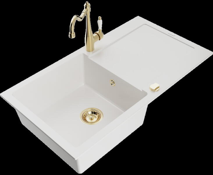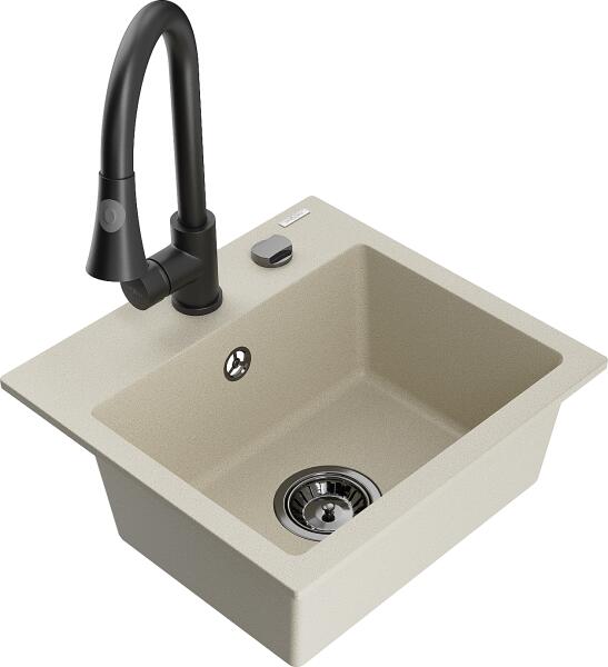 Mexen Milo konyhai mosogató: Gyártó: Mexen Sorozat: Milo Modell: 1 kamrás Beépítés: felülről a munkalapba süllyesztve Hossza 435 mm Szélesség 410 mm Magasság: 171 mm Kamra mélysége: 161 mm Kamra mérete: 375x280 mm Lefolyó átmérője: 90 mm Szifon + automatikus leeresztő csavar Anyaga: gránit (80% gránit - kő, 20% gyanta) Sima felület a könnyű tisztítás érdekében: igen