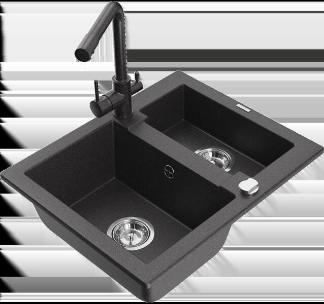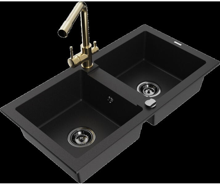 NERO Arriva gránit mosogató, ami több szempontból is nagyszerű választás. Mindössze 60 cm helyet foglal, de tágas medencéjének, és a gyümölcsmosónak és kis perem részének köszönhetően nagyon praktikus. Használhatóságát tovább erősíti az 50 cm-es mérete a fal felé, valamint a fő medence közel 20 cm-es mélysége. A mosogatón 2 lyuk található egymással szemben, ez