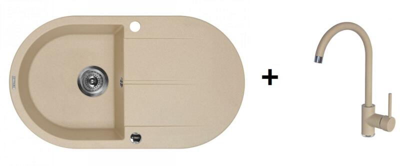 Deante Piva Gránit, ovális mosogató medence 780x440x180mm +csepegtető szifon leeresztővel+ magasított csapteleppel HOMOK 06ZQI711B+06BEW762M