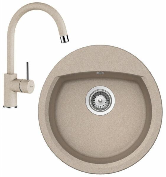 Schock Manhattan R-100 konyhai mosogatótálca Cristalite Sabbia 470 x 490 mm, gránit, hagyományos beépítés, homok munkalapba beépíthető, egymedencés, csepegtető nélküli, ideálisan illeszkedik a minimum 45 cm-es alsószekrényhez. A csaptelep helye előre elkészített, könnyedén áttörhető. A csomagban találja a használati útmutatót, amely részletes leírást ad a csaptelep