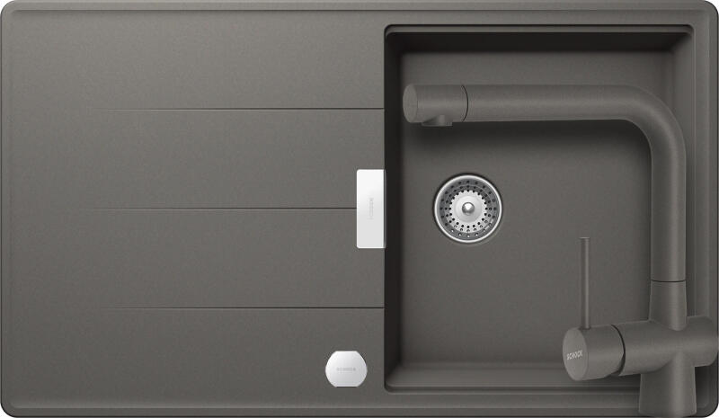 Schock Tia D-100 konyhai mosogatótálca Cristadur Silverstone 860 x 500 mm lefolyó távműködtetővel, gránit, megfordítható, hagyományos beépítés, sötétszürke– a prémium minőségű Tia D-100 mosogató aktívan besegít az élelmiszerek előkészítésében, amelyet 40 éves gyártói tapasztalat igazol. A kivitelezésben használt innovációs megoldások a vásárlók jövőbeni