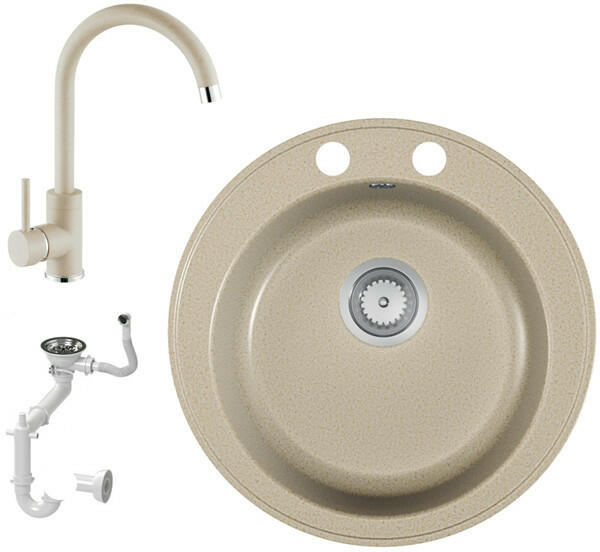 EOS Valero kör kialakítású gránit mosogató szett homokbézs színben. A készlet tartalmazza a szifont is, ami mosogatógépre is csatlakoztatható. Méreténél fogva ideális kisméretű konyhákba, ahol az okos helykihasználás lényeges. Kis mérete ellenére, a 37 cm-es belső átmrőnek köszönhetően nagyobb edények is elférnek benne. Már egy 45 cmszéles mosogató szekrénybe is