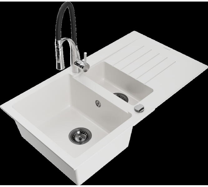 Leo konyhai mosogató: Gyártó: Mexen Sorozat: Leo Modell: 1-kamrás s csepegtetővel Hossza 900 mm Szélesség 500 mm Magasság: 190 mm Kamra mélysége: 180 mm Kamra mérete: 430x415 mm Alkalmas 500 mm-es szekrényekhez Szifon + automatikus leeresztő csavar Anyaga: gránit (80% gránit - kő, 20% gyanta) Sima felület a könnyű karbantartás érdekében: igen Megnövelt ellenállás az ütés
