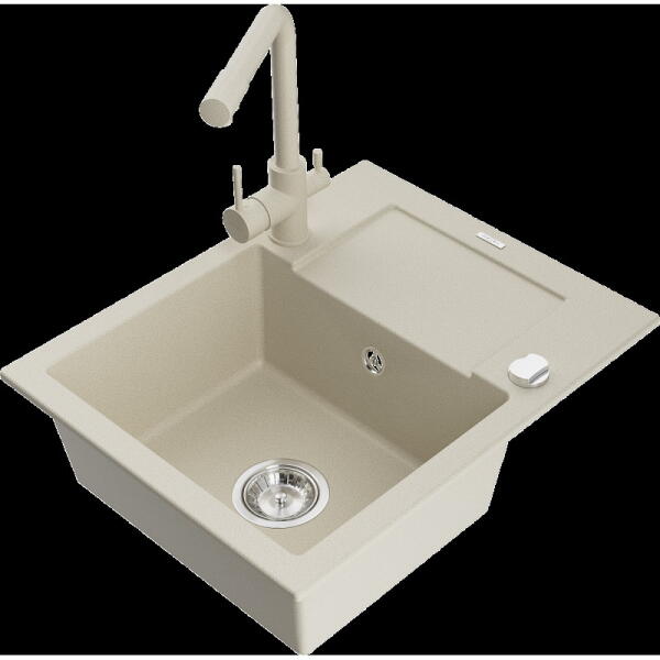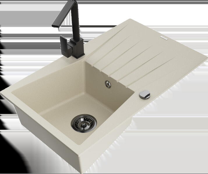 Mexen Tomas, gránit mosogató 800x500x190 mm, 2 kamrás és Rita króm csaptelep, bézs, 6516-69-670300-00 A konyhai mosogató műszaki adatai: Gyártó: Mexen Sorozat: Tomas Modell: 2-kamrás csepptálca nélkül Felszerelés: munkalapra Szín: bézs Felület: sima Hossza 800 mm Szélesség 500 mm Magasság: 190 mm Kamra mélysége: 180 mm (nagyobb), 180 mm (kisebb) Kamra mérete: 440x387 mm (n