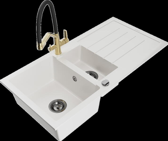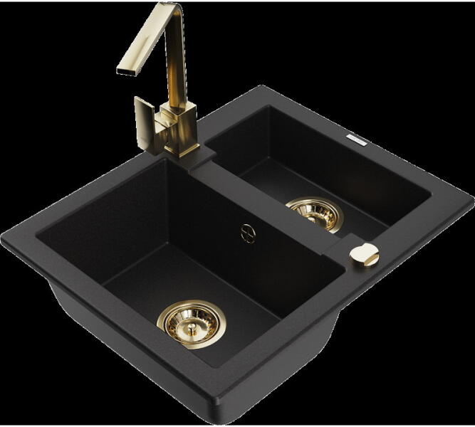 Mexen Andres, gránit mosogató 1000x500x200 mm, 1,5 kamrás Gyártó: Mexen Sorozat: Andres Modell: 1,5-kamrás lefolyóval Beépítés: felülről a munkalapba süllyesztve Hossza 1000 mm Szélesség 500 mm Magasság: 200 mm Kamra mélysége: 190 mm (nagyobb), 115 mm (kisebb) Kamra mérete: 430x330 mm (nagyobb), 340x170 mm (kisebb) Lefolyó átmérője: 90 mm Szifon + automatikus leeresztő csav