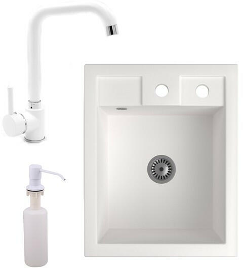 NERO Parma amely kisméretű, de mégis nagyon tágas gránit mosogató, csapteleppel, szifonkészlettel és beépíthető mosogatószer adagolóval, fehér színben . Egyik nagy előnye, hogy már egy 40 cm széles konyhabútor elembe is beépíthető, az 50 cm-es mélysége kellő méretet biztosít. A medence mélysége is nagynak számít, 18 cm. Tökéletes bármilyen stílusú konyhába ahol