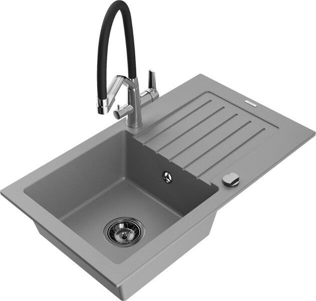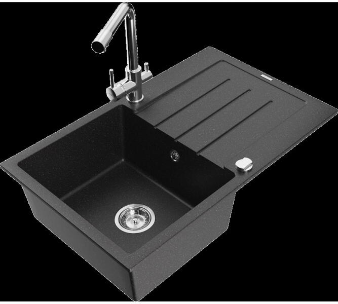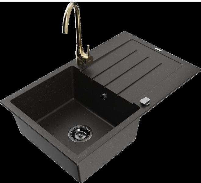 Pablo konyhai mosogató: Gyártó: Mexen Sorozat: Pablo Méretek: 752x436x161 mm Kamra mélysége: 151 mm Kamra méretei: 356x332 mm Lefolyó átmérője: ø90 mm Típus: 1 kamrás csepegtetővel Típus: a pultba süllyesztve Anyaga: gránit (80% gránit adalékanyag 20% gyanta) Túlfolyó lyuk: igen Lyukak: 2 (1 lyuk az akkumulátorhoz, 1 lyuk az automatikus szifondugó vezérléséhez) Be