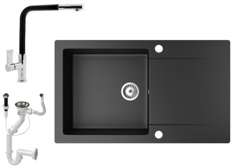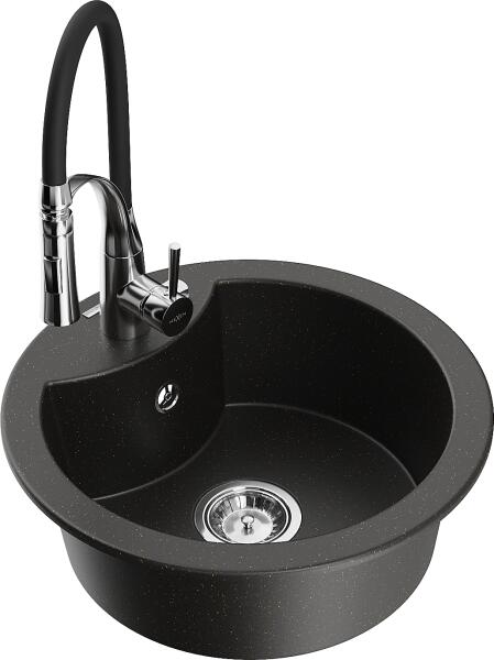 Mexen Enzo, gránit mosogató 576x465x174 mm, 1 kamrás, fekete Telma csaptelep, szürke, 6506-71-670200-70 Gyártó: Mexen Sorozat: Enzo Modell: 1 kamrás, rövid csepegtetővel Hossza 576 mm Szélesség 465 mm Magasság: 174 mm Szín: szürke Kamra mélysége: 164 mm Kamra mérete: 395x320 mm Szifon + automatikus leeresztő csavar Anyaga: gránit (80% gránit - kő, 20% gyanta) Megnövelt ellen
