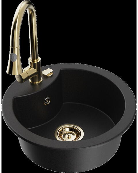 Mexen Diego konyhai mosogató: Gyártó: Mexen Sorozat: Diego Modell: 1 kamrás Beépítés: felülről a munkalapba süllyesztve Méretek: 488x488x167 mm Kamra mélysége: 157 mm Kamra átmérője: 406 mm Lefolyó átmérője: 90 mm Szifon + automatikus leeresztő csavar Anyaga: gránit (80% gránit - kő, 20% gyanta) Sima felület a könnyű tisztítás érdekében: igen Megnövelt ellenállás