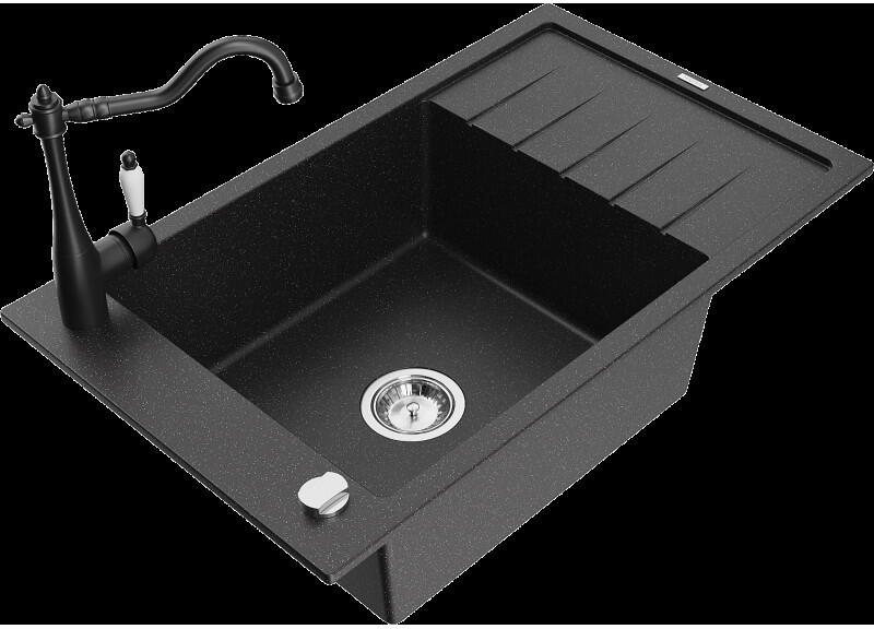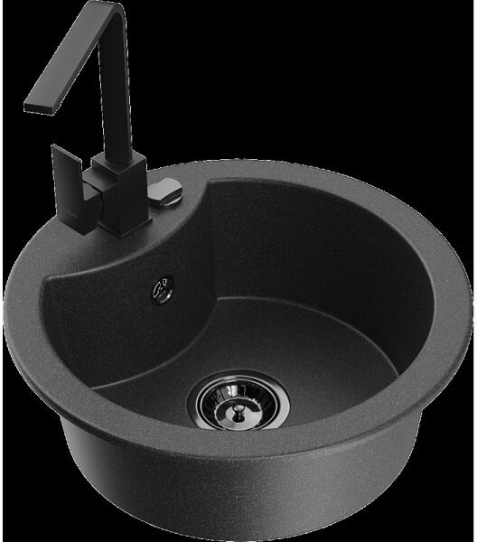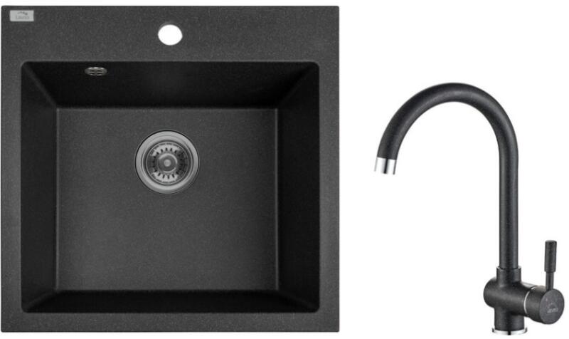 Laveo SZETT ALENA +LETTE Gránit tálca + Álló csaptelep - Fekete