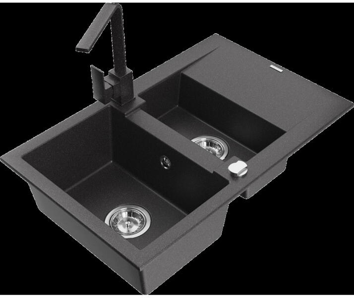 NERO Malta gránit mosogató, ami egyesíti a praktikus megoldást a bőséges helykínálattal és a harmonikus designnal. Méretes, 36 x 38 cm-es, medencével és kellően nagy csepegtető résszel rendelkezik, arányosan kialakítva. Minden igényt kielégít ami egy mosogatótól elvárható, amihez mindössze 78 cm hely szükséges. Egyenes és hajlított vonalvezetés harmonikus keveréke je