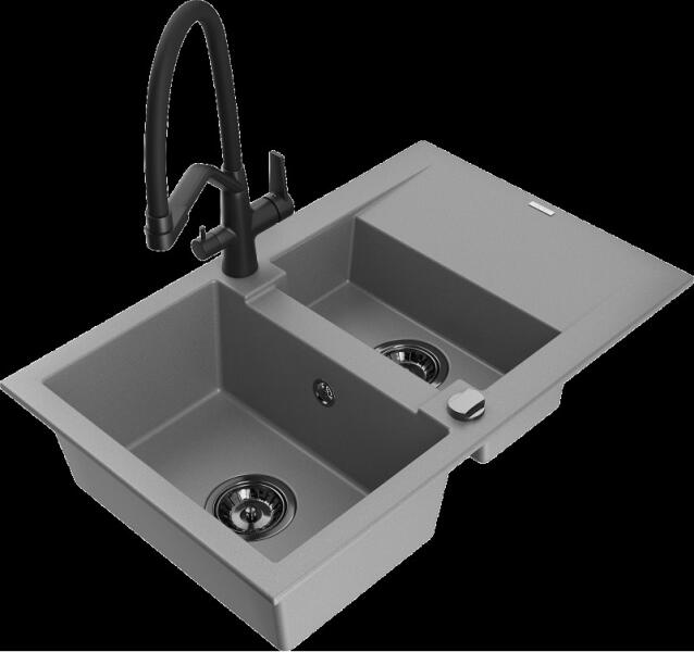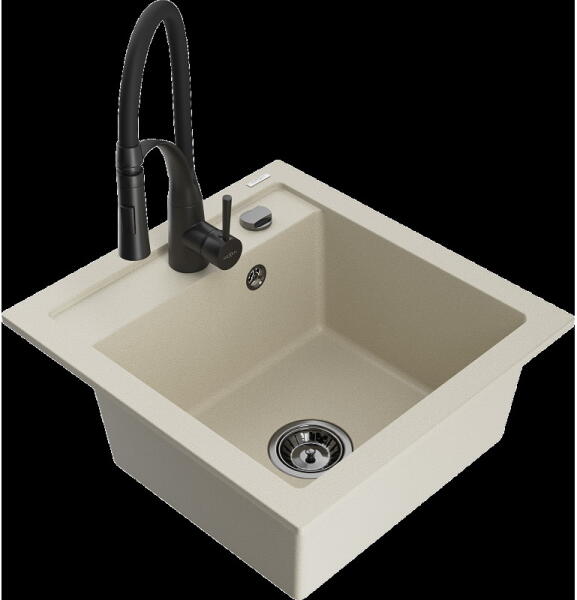 Gyártó: Mexen Sorozat: Elias + Savita Mosogató: Mérete: 795x480x200 mm Kamra - mélység: 190 mm Kamra méretei: 465x420 mm Kimeneti átmérő: ø90 mm Típus: 1 kamrás, rövid csepegtetővel Mosogató típusa: a munkalapba való beágyazáshoz Anyaga: gránit (80% gránit adalékanyag 20% gyanta) Túlfolyó nyílás: Igen Lyukak: 2 (1 lyuk a mosogató csaptelepéhez, 1 lyuk az automatikus le