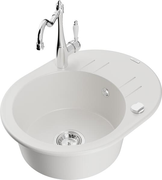 Mexen Kevin, gránit mosogató 586x458x190 mm, 1 kamrás és mosogató csaptelep Carla, fehér, 6517-20-670700-00 Gyártó: Mexen Sorozat: Kevin Fehér szín Modell: 1 kamrás, rövid leeresztővel Felszerelés: munkalapra Hossza 586 mm Szélesség 458 mm Magasság: 190 mm Kamra mérete: 378x374 mm Kamra mélysége: 175 mm A lefolyó átmérője: Ø 90 mm Szifon + automatikus leeresztő csavar Any