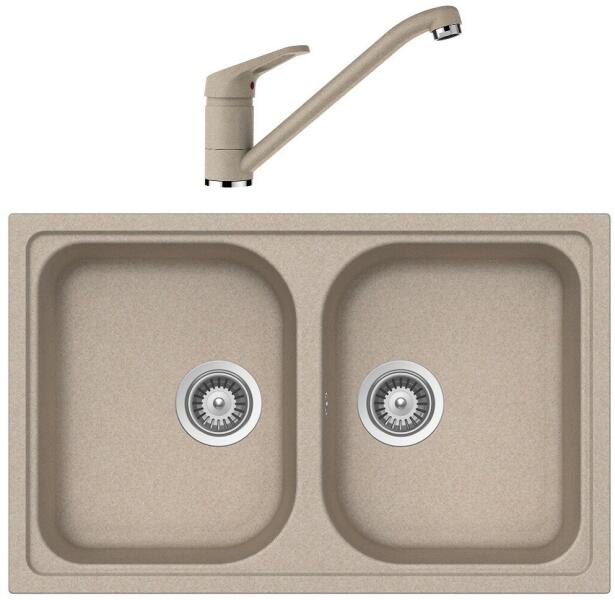 Schock Viola N-200S Gránit Mosogató 790 x 500 mm Sabbia Cristalite munkalapba beépíthető, kétmedencés, csepegtető nélküli, ideálisan illeszkedik a minimum 80 cm-es alsószekrényhez. A csaptelep helye előre elkészített, könnyedén áttörhető. A csomagban találja a használati útmutatót, amely részletes leírást ad a csaptelep helyének megfelelő módon történő áttörés