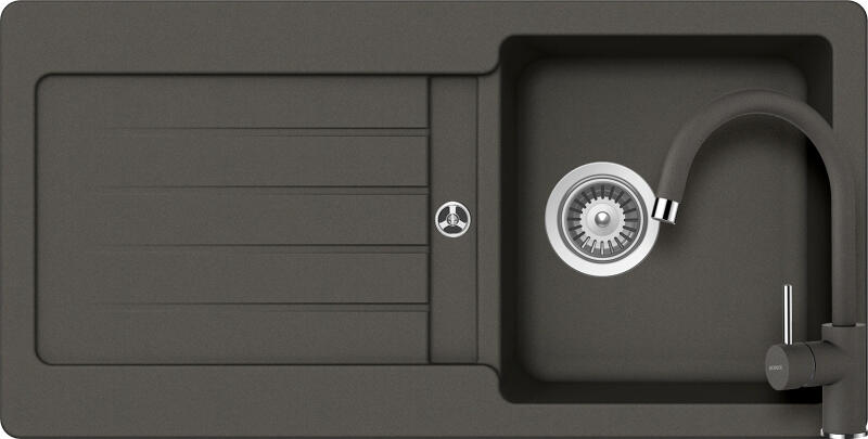 Schock Typos D-100S konyhai mosogatótálca Cristalite Asphalt 860 x 435 mm, gránit, megfordítható, hagyományos beépítés, aszfaltszürke munkalapba beépíthető, egymedencés, megfordítható, csepegtetővel ellátott, ideálisan illeszkedik a minimum 45 cm-es alsószekrényhez. A csaptelep helye előre elkészített, könnyedén áttörhető. A csomagban találja a használati útmutatót