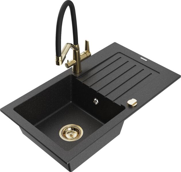 NERO Malta gránit mosogató, ami egyesíti a praktikus megoldást a bőséges helykínálattal és a harmonikus designnal. Méretes, 36 x 38 cm-es, medencével és kellően nagy csepegtető résszel rendelkezik, arányosan kialakítva. Minden igényt kielégít ami egy mosogatótól elvárható, amihez mindössze 78 cm hely szükséges. Egyenes és hajlított vonalvezetés harmonikus keveréke je
