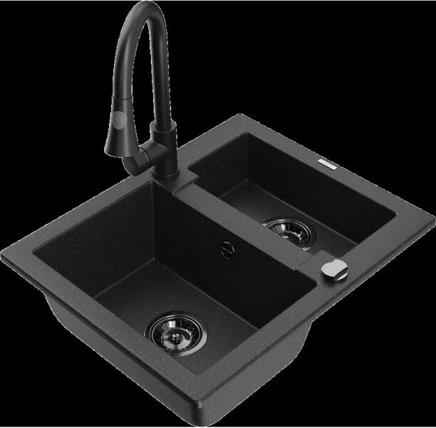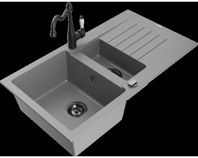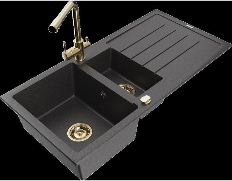 Matias konyhai mosogató: Gyártó: Mexen Sorozat: Matias Modell: 1,5-kamrás lefolyóval Beépítés: felülről a munkalapba való beágyazáshoz Hossz: 900 mm Szélesség: 505 mm Magasság: 200 mm Kamra mélysége: 180 mm (nagyobb), 115 mm (kisebb) Kamra mérete: 435x335 mm (nagyobb), 345x150 mm (kisebb) Lefolyó átmérője: 90 mm Szifon + automatikus leeresztő csavar Anyaga: gránit (80% gr