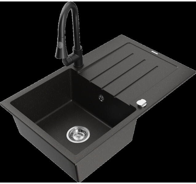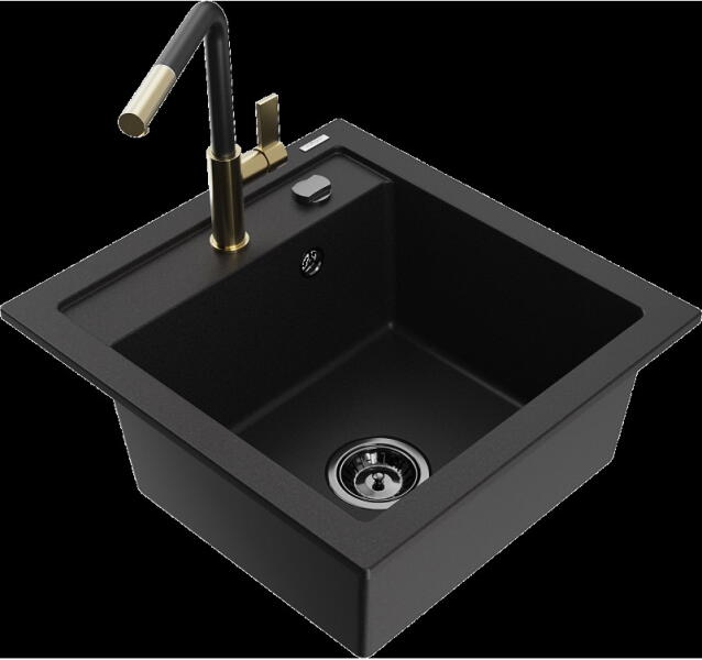Mexen Milo konyhai mosogató: Gyártó: Mexen Sorozat: Milo Modell: 1 kamrás Beépítés: felülről a munkalapba süllyesztve Hossza 435 mm Szélesség 410 mm Magasság: 171 mm Kamra mélysége: 161 mm Kamra mérete: 375x280 mm Lefolyó átmérője: 90 mm Szifon + automatikus leeresztő csavar Anyaga: gránit (80% gránit - kő, 20% gyanta) Sima felület a könnyű tisztítás érdekében: igen