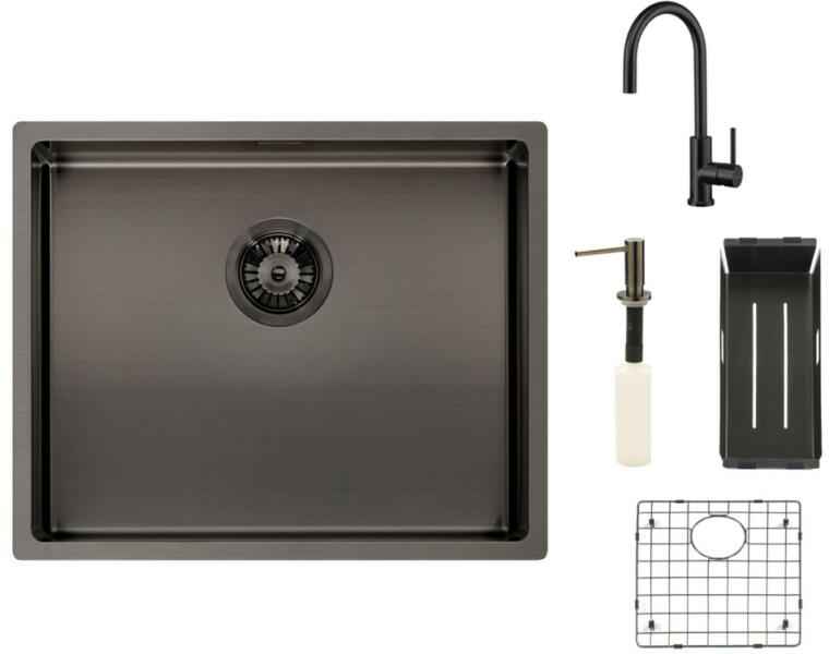 A kiegészítőket is tartalmazó luxus fém mosogatókészletet a tekintélyes Reginox cég, a mosogatók piacvezetője gyártja. A Reginox több, mint 39 éve van jelen a piacon, a dizájnra, a minőségre és a környezetvédelemre helyezve a hangsúlyt. A Miami 500 Gun metal (R30721) rozsdamentes acél mosogató a Regi-colour színes mosogatók tervezési sorozatának a része. Az arany szín