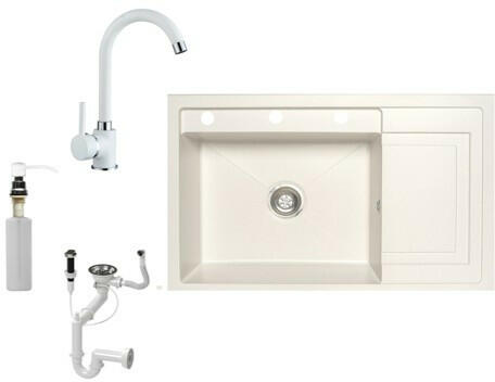 Vancouver gránit mosogató szett fehér színben, extra nagy medencés kivitelben. A 38,5 x 48,5 cm-es nagyméretű medence és a csepegtető megkönnyíti a nagyobb edények, lábosok elmosását. A két lyuk felül helyezkedik el, így kényelmes a csap és az adagoló használata. A letisztult szögletes formavilág kiválóan illeszkedik egy modern stílusú konyhába. A fehér gránit mosoga