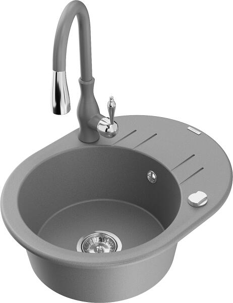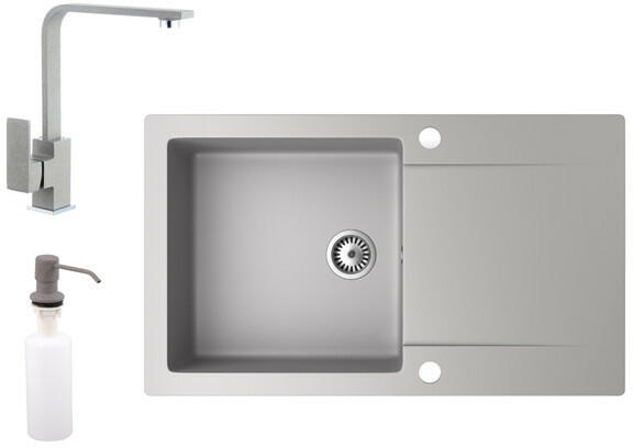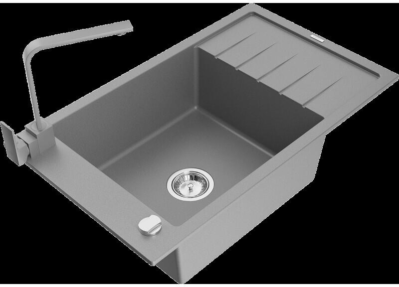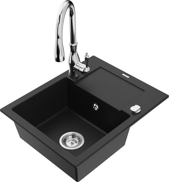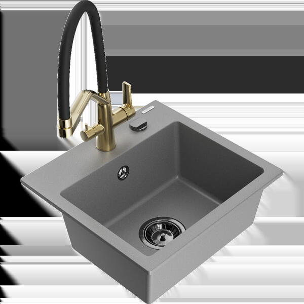 Mexen Kevin, gránit mosogató 586x458x190 mm, 1 kamrás és Savita mosogató csaptelep, szürke, 6517-71-672601-71 Gyártó: Mexen Sorozat: Kevin Szín: szürke Modell: 1 kamrás, rövid leeresztővel Beépítés: a munkalapba való beágyazáshoz Méretek: 586 x 458 x 190 mm Kamra mérete: 378 x 374 mm Kamra mélysége: 175 mm A lefolyó átmérője: Ø 90 mm Szifon + automatikus leeresztő csav
