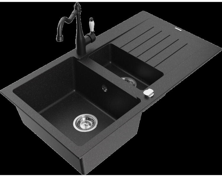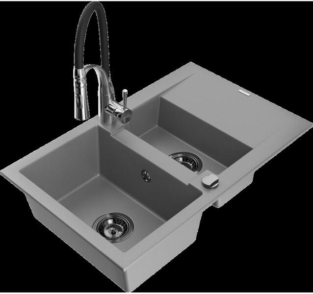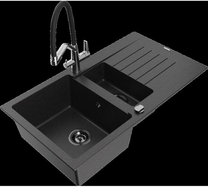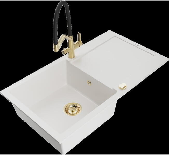 Mexen Gaspar konyhai mosogató: Gyártó: Mexen Sorozat: Gáspár Modell: 1,5-kamrás, rövid leeresztővel Beépítés: felülről a munkalapba süllyesztve Hossz: 737 mm Szélesség: 475 mm Magasság: 177 mm Kamra mélysége: 167 mm (nagyobb), 107 mm (kisebb) Kamra mérete: 395x272 mm (nagyobb), 375x182 mm (kisebb) Lefolyó átmérője: 90 mm Szifon + automatikus leeresztő csavar Anyaga: gráni