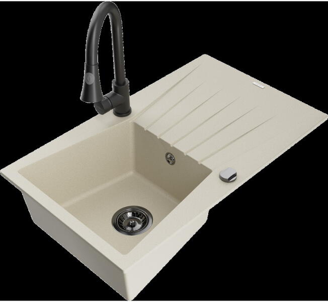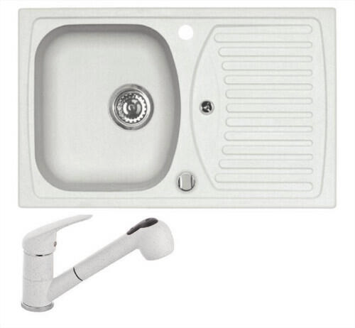 Alveus Record 30 egymedencés csepptálcás gránit mosogató + Színazonos Alveus zuhanyfejes csaptelep Granital széria Különleges, kiváló minőségű kompozit anyagból készült mosogatómedence Egyedi megjelenés Munkalapra szerelhető modell 1 medencés + csepegtető tálcás Méret: 780 x 480 Medence mélység: 160 mm Minimum szekrény méret: 450 mm praktikus helytakarékos forma Aján