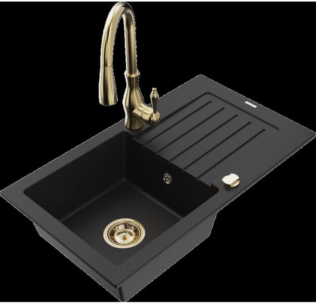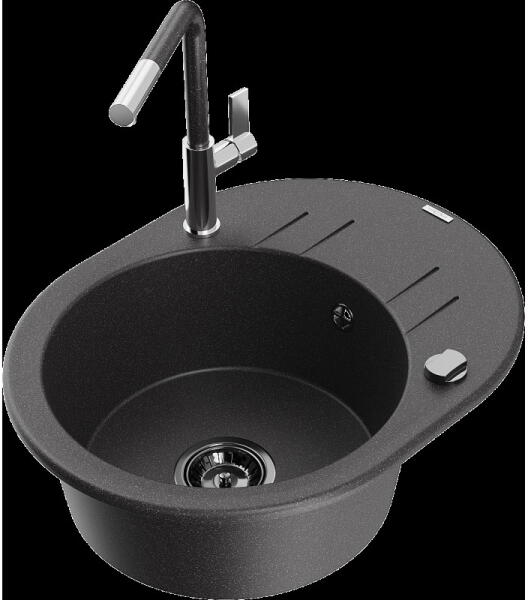 Mosogató: Gyártó: Mexen Sorozat: Vito Modell: 1 kamrás Felszerelés: munkalapra Felület típusa : sima Hossza 490 mm Szélesség 520 mm Magasság: 210 mm Kamra mélysége: 200 mm Kamra mérete: 410x360 mm Lefolyó átmérője: 90 mm Szifon + automatikus leeresztő csavar Anyaga: gránit (80% gránit - kő, 20% gyanta) Megnövelt ellenállás az ütésekkel, karcolásokkal, elszíneződésekke